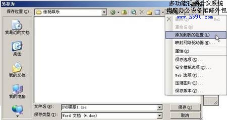 Office軟件的打開(kāi)/保存對(duì)話框比較特殊,它用的不是標(biāo)準(zhǔn)Windows打開(kāi)/保存對(duì)話框,以O(shè)ffice XP為例,在打開(kāi)/保存對(duì)話框中選定一文件夾,然后單擊對(duì)話框“工具→添加到’我的位置’”命令,(如圖2)所示,就可以在文件對(duì)話框的“查找位置”下找到新文件夾,單擊即可快速訪問(wèn)它。右擊可以看到刪除、小圖標(biāo)、重命名等命令,可以對(duì)新文件夾進(jìn)行管理。