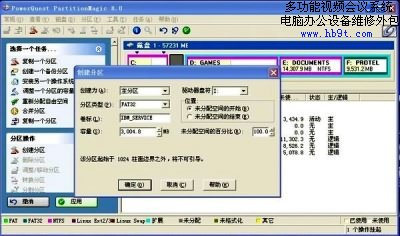 點擊確定,此時可以看到C分區(qū)后面出現(xiàn)了一個未分配的區(qū)域。在此未分配的區(qū)域上點擊鼠標右鍵,選擇創(chuàng)建,彈出一個創(chuàng)建分區(qū)窗口。在創(chuàng)建為選擇主分區(qū)、分區(qū)類型選擇FAT32、卷標中輸入IBM_SERVICE、容量里輸入3000MB、驅動器盤符選擇缺省配置。在這里說明兩點,必需得創(chuàng)建成主分區(qū),否則此分區(qū)無法啟動。卷標名稱也不能有錯,否則F11的程序將找不到相應文件。