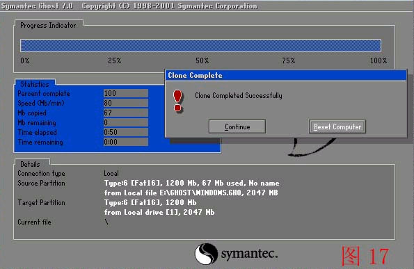 此處是提示GHST根據(jù)您的指示 已經(jīng)備份完畢給出的二個(gè)選擇 一 默認(rèn)為重新啟動(dòng)