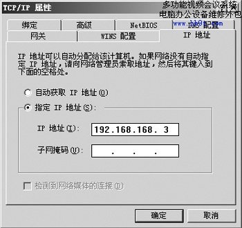 圖3 AboveCable 1100無(wú)線路由器的IP為192.168.168.230,因此這里我們?cè)O(shè)定為192.168.168.X(X=0255),至于“子網(wǎng)掩碼”可以暫時(shí)不要設(shè)定。