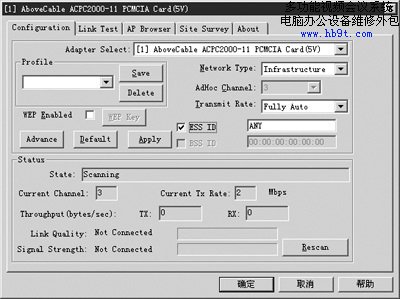 圖14 應用程序還能對無線網(wǎng)絡的工作參數(shù)進行設定,其中最關鍵的便是Network Type和Transmit Rate,默認值都是自動調(diào)整。當然,如果你對無線網(wǎng)絡工作模式十分了解的話,也可以自己設定。